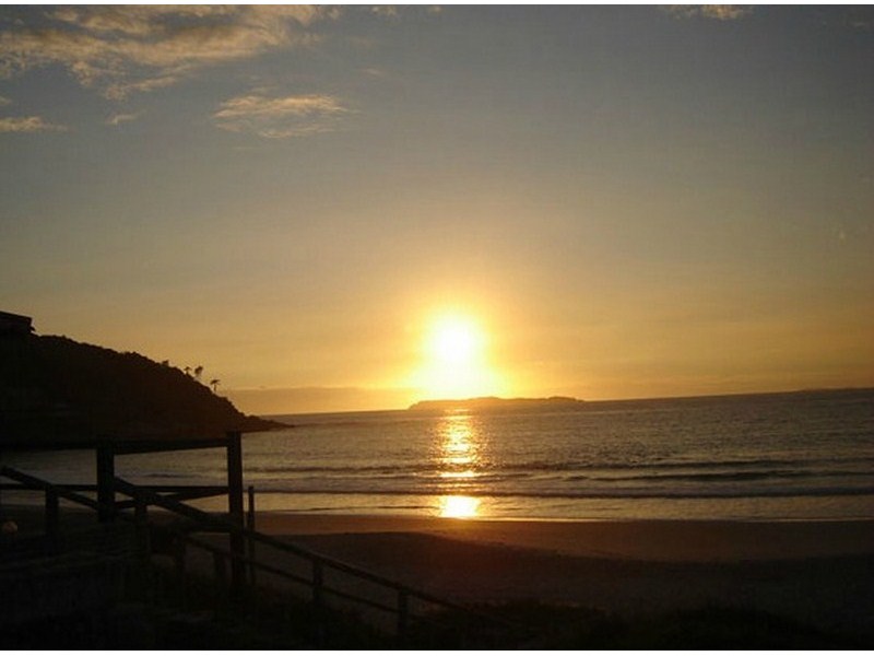 É conhecida pelos moradores mais antigos como Praia de Fora, devido sua localização e característica de mar aberto. O nome Quatro Ilhas deve-se às quatro ilhas avistadas desde a praia. Uma delas, a Ilha do Macuco, próxima ao continente. As outras três, Ilha das Galés, Deserta e Arvoredo, são as que compõem a Reserva Biológica Marinha do Arvoredo. A belíssima praia preservada por restinga, possui 1km de extensão. É reduto de jovens que buscam suas boas ondas para a prática do surf.