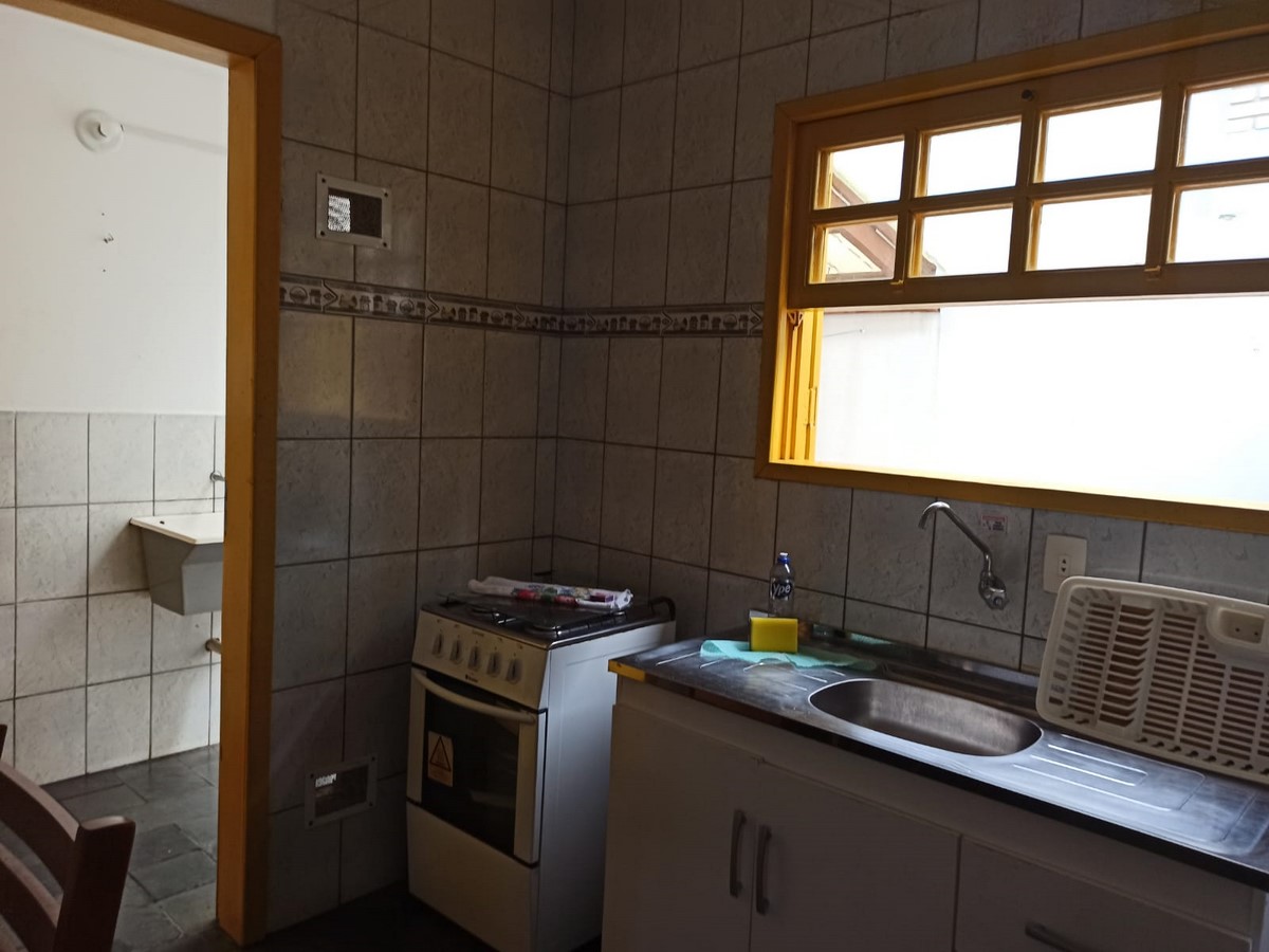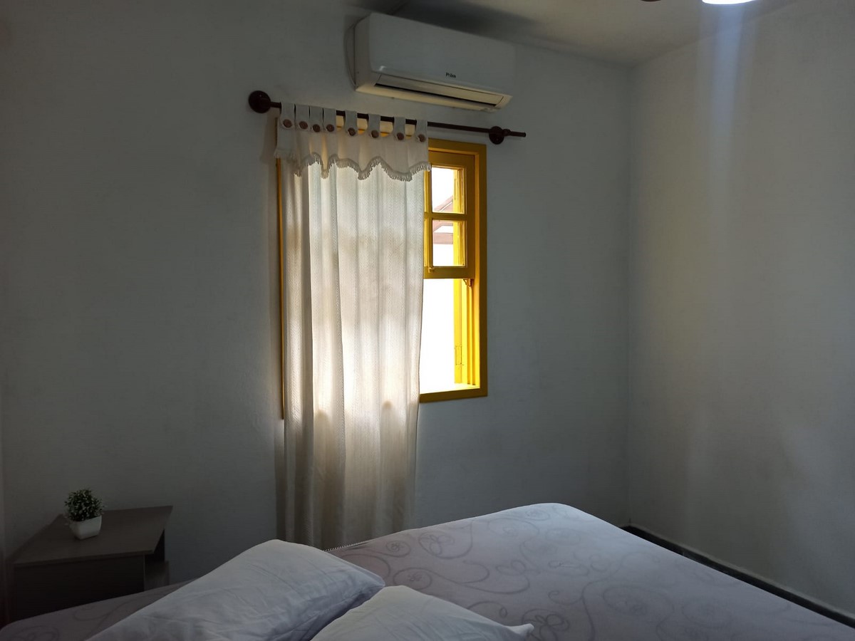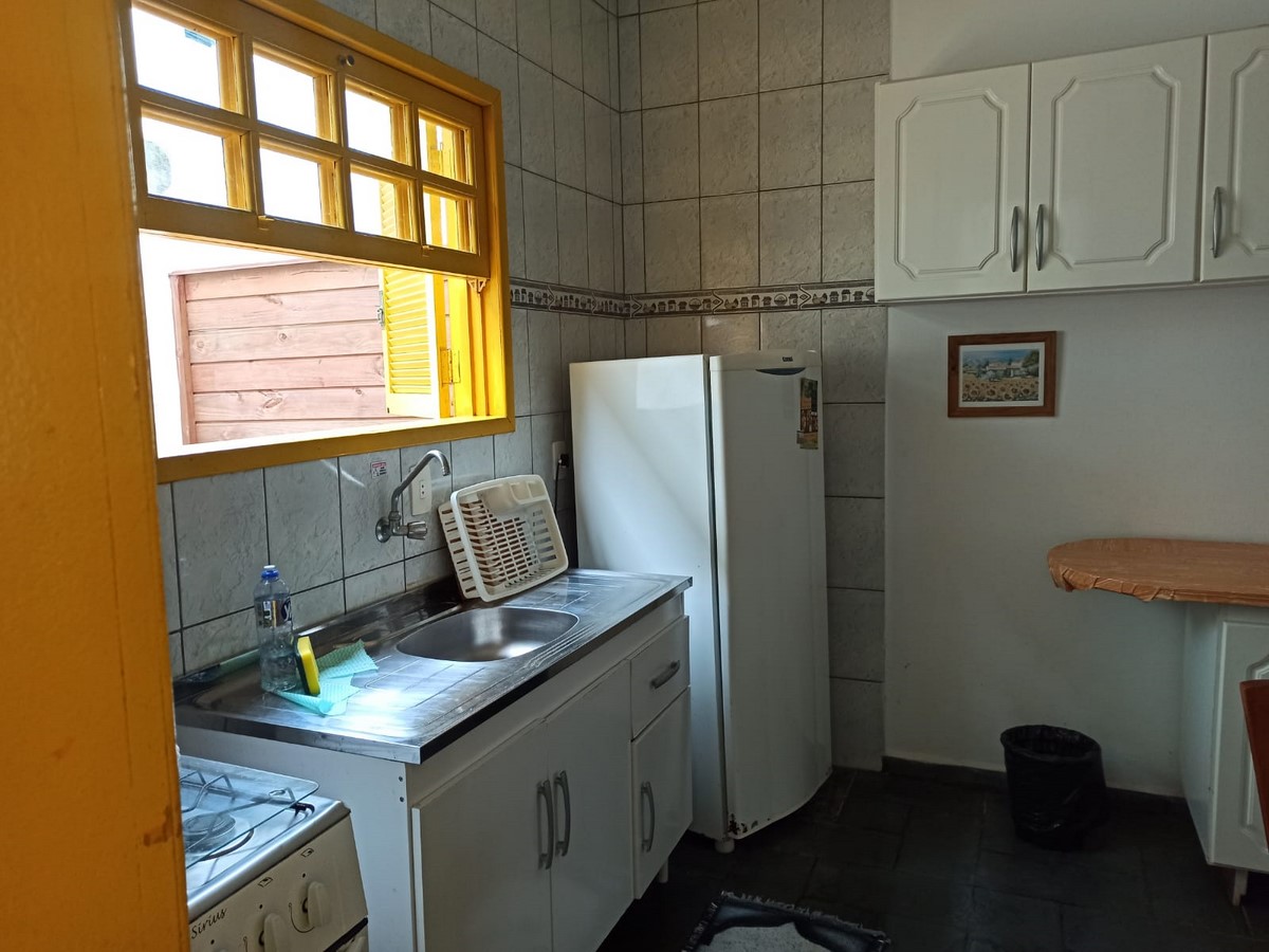 Um quarto com cama de casal BOX com AR CONDICIONADO, e no outro quarto um beliche e uma cama individual com ventilador de teto. Cozinha com fogão, geladeira, microondas, liquidificador, novos acessórios de cozinha, pátio (piso térreo) ou varanda (primer andar), com tanque de lavar e uma churrasqueira privativa com espetos e grelha. Sala de TV com 32" smart HD com sofá-cama para 1 adulto. Capacidade máxima: 6 pessoas